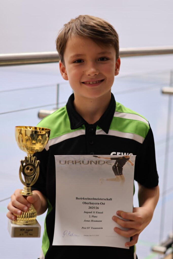 Am 24. September 2025 fand im Sportkeller der Turnhalle in Haslach die Tischtennis Jugendvereinsmeisterschaft des Post SV Traunstein statt. Es waren 14 Spieler und Spielerinnen am Start. Gespielt wurde in zwei Gruppen aufgeteilt gemäß der TTR Liste, um ausgewogene Gruppen zu gewährleisten. Die Halbfinale und Finale wurden dann im KO System ausgespielt. Zum Vereinsmeister konnte sich Matias Soriano Rincon (1.Platz) vor Julien Sundt Johannesen (2. Platz ) küren lassen. Weitere Ergebnisse: 3. Platz: Rafael Soriano Rincon, 4. Platz Jonas Heumann, 5. Helena Kaiser sowie Silvan Eder und 6. Platz Belen Soriano Rincon sowie Rebecca Timm.